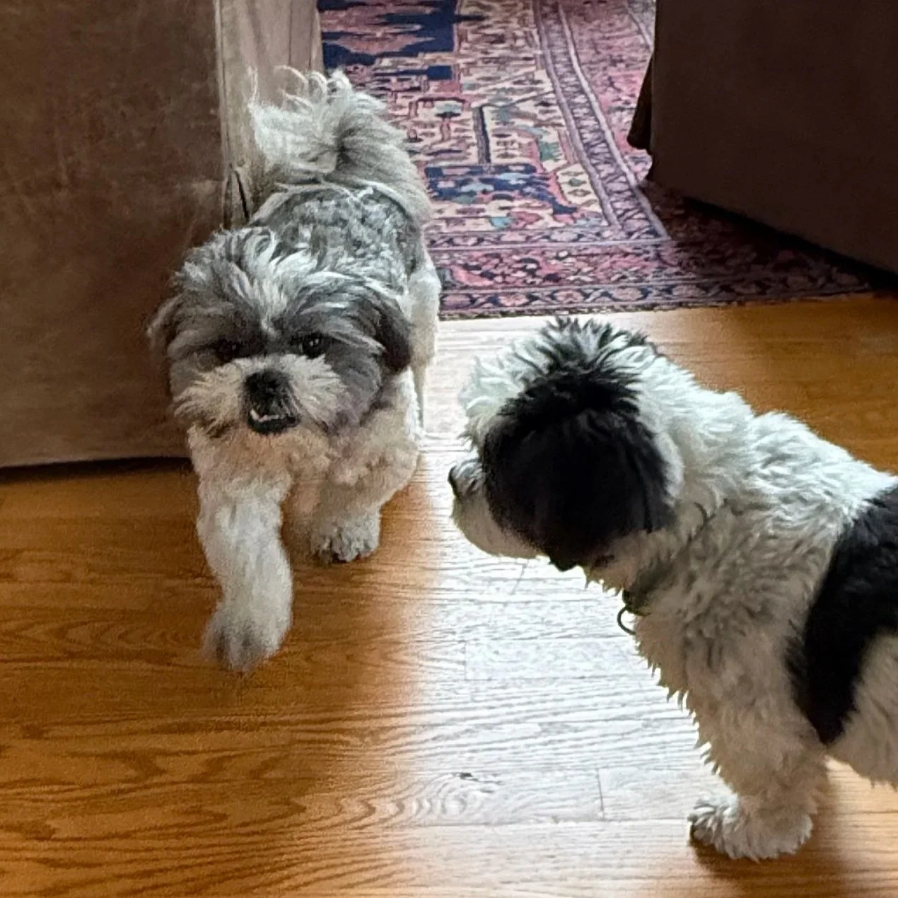 Max Eli, now HERCULES has officially joined his pack after just 4 days here! Now he’s part of the crew with Marjorie, Edmund, and Xena — and we couldn’t be more excited. The only test? Could the kitties, Pootie and McRib accept this sweet boy! A special shoutout to Xena, who’s usually very selective with her doggy friends… but the moment she met Max Eli, it was like a race to friendship!